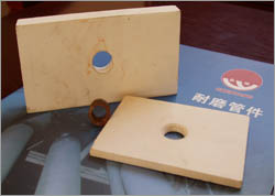 我公司針對(duì)火電、冶金、水泥等行業(yè)存在的管道、彎頭、燃燒器等其它設(shè)備部位磨損特別嚴(yán)重并且溫度較高、粘貼剛玉耐磨陶瓷貼片容易脫鑲套型的結(jié)合強(qiáng)度: